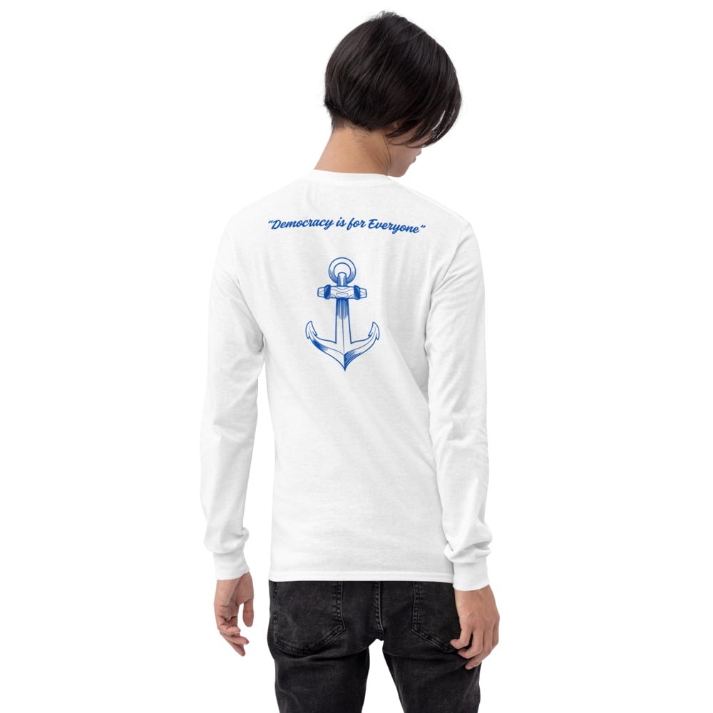Ride the wave of progress with this bold long sleeve tee. Featuring a striking blue wave and sun design on the front and a powerful back graphic with an anchor and the words “Democracy is for Everyone”, this shirt blends style with purpose. Built for comfort and activism, it’s perfect for rallies, casual wear, or anyone proud to stand for equality and unity.