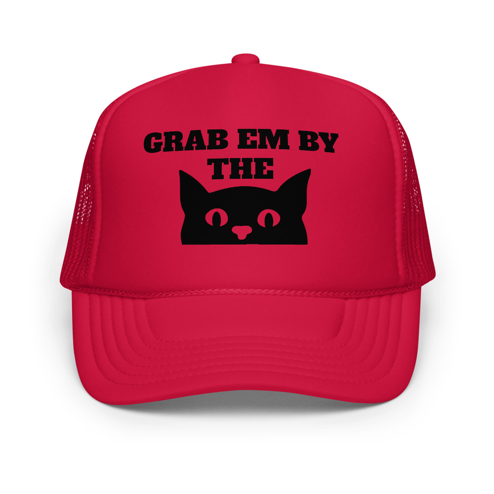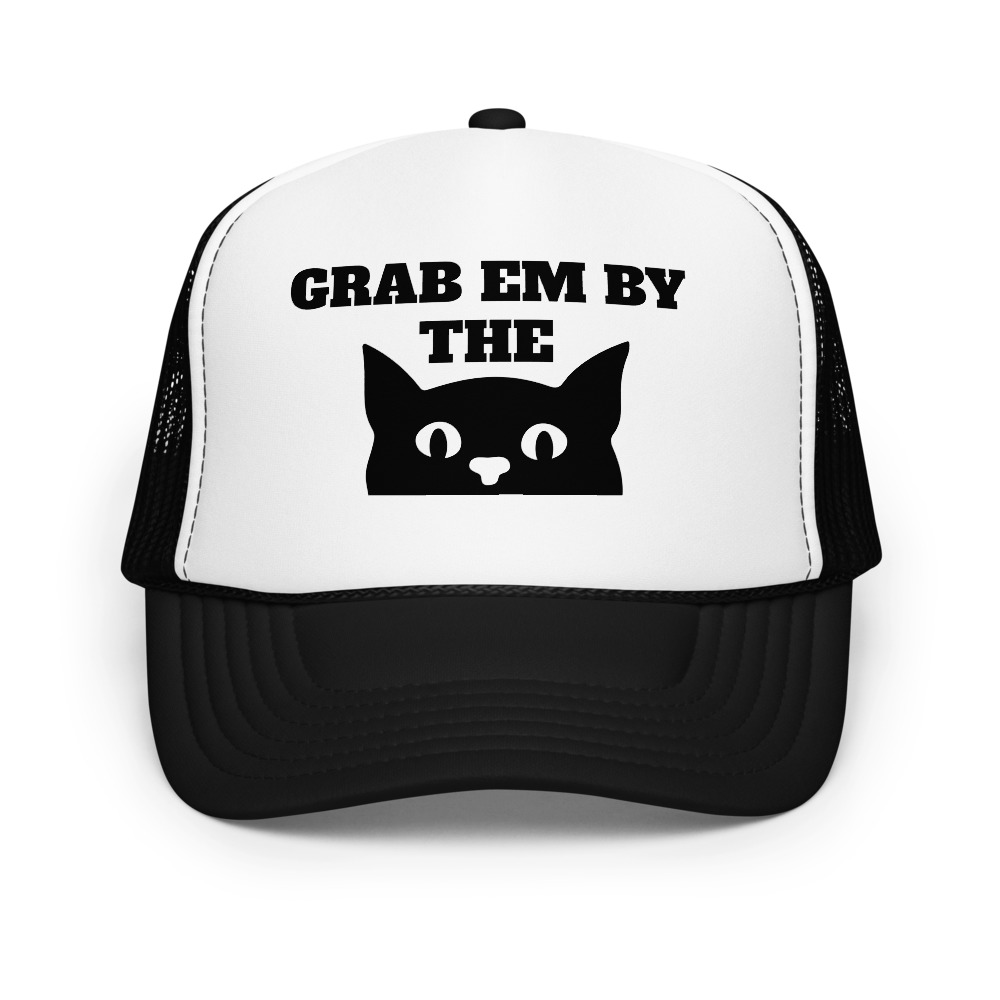 Make a bold (and hilarious) statement with this satirical hat featuring a cute cat graphic and the phrase “Grab ’em by…” — a playful twist on one of Donald Trump’s most infamous quotes. Equal parts political protest and conversation starter, this hat combines humor, resistance, and style. Perfect for rallies, casual wear, or gifting to a friend who loves cats and can’t stand Trump.
